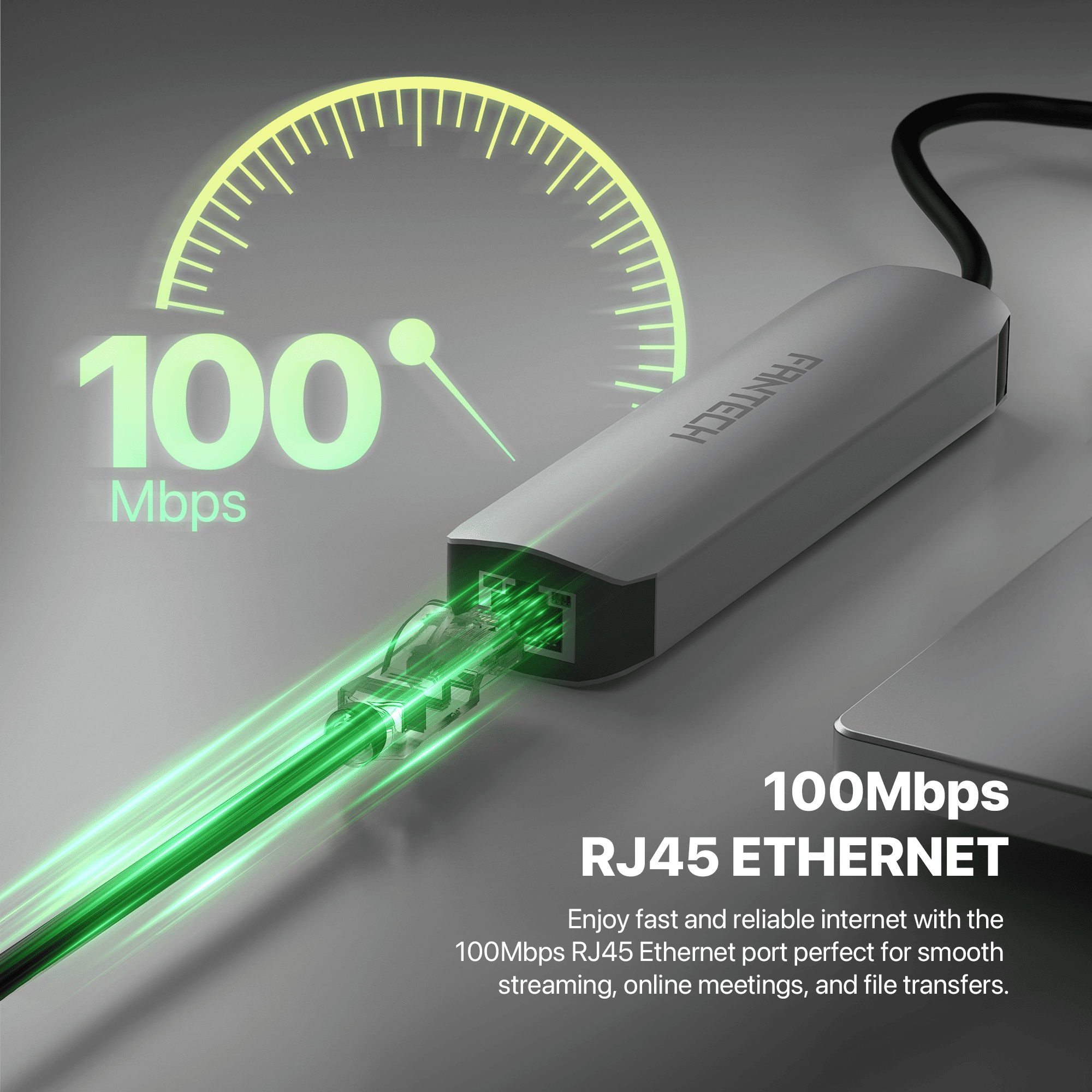 For display and network needs, the FANTECH NeraLink HC051 USB-C Hub includes an HDMI display output for external monitors or projectors and a 100Mbps Ethernet (RJ45) port for reliable wired internet access. This makes the NeraLink docking hub perfect for presentations, streaming, and office environments where stable connectivity is essential.