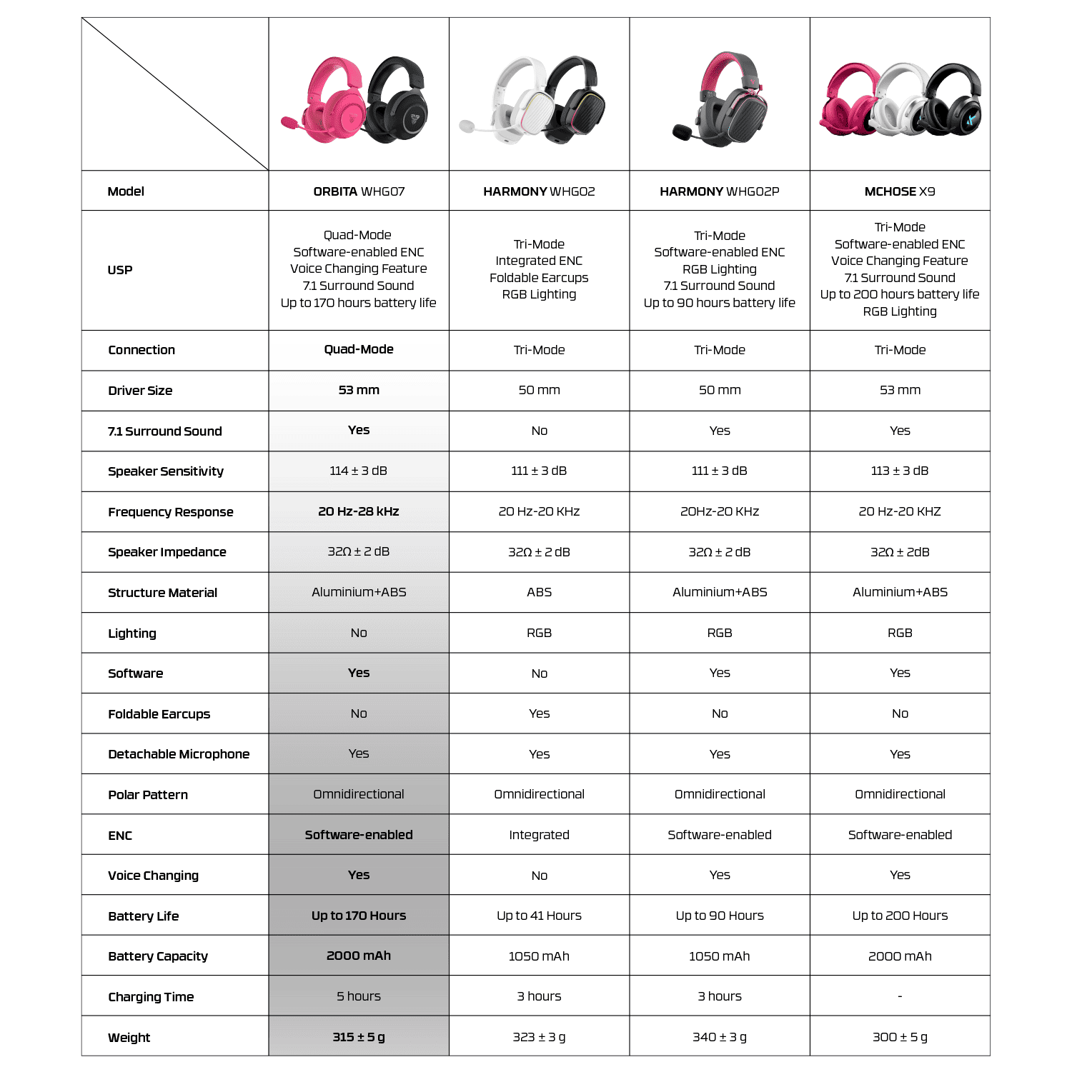 ✅ Featuring an advanced Quad Mode Connection, the WHG07 ORBITA lets you instantly switch between 2.4GHz wireless, Bluetooth, USB-C, and 3.5mm audio modes. Whether you’re gaming on PC, console, mobile, or listening through wired devices, this headset delivers seamless compatibility and unmatched audio freedom.