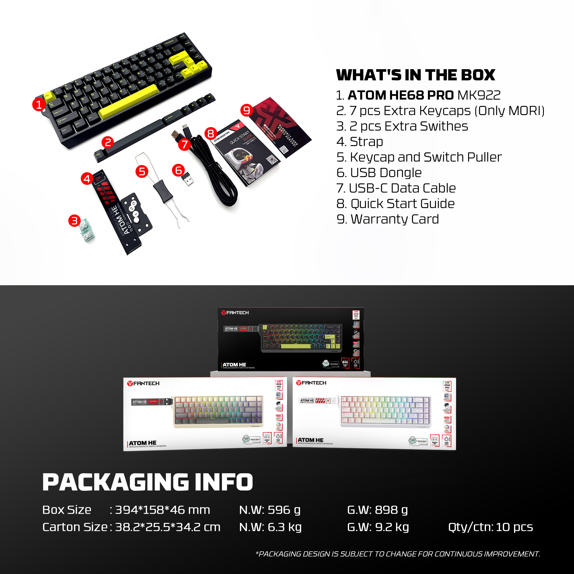 FANTECH MK922 ATOM HE68 PRO Wireless Gaming Mechanical Keyboard With Tri-Mode Wireless Connectivity