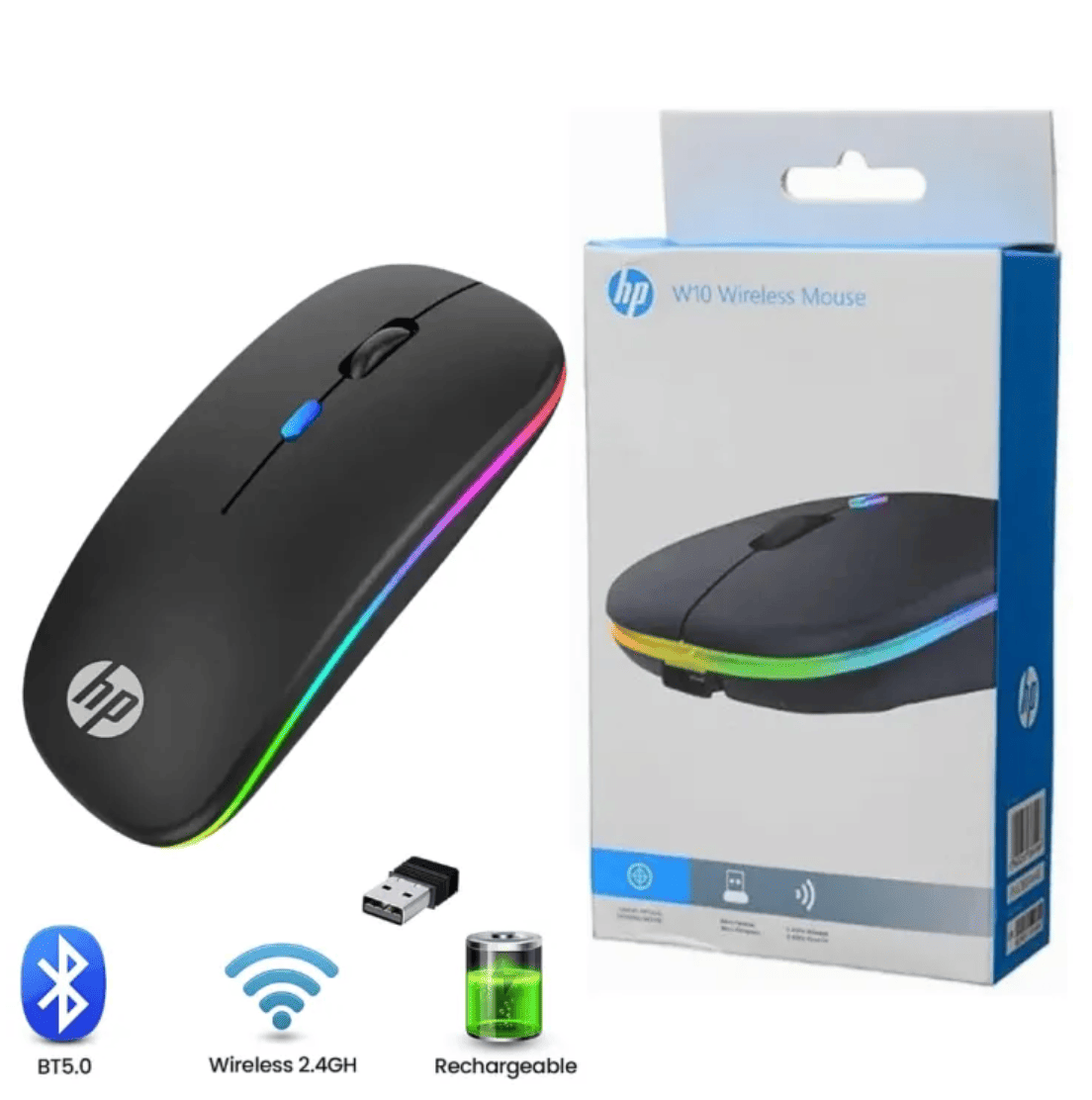 HP W10 Dual Mode Bluetooth+Wireless Rechargeable Mouse