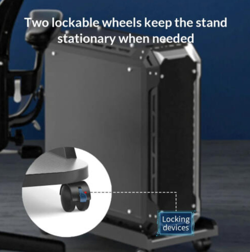 - Lockable wheel mechanism keeps CPU stand securely positioned