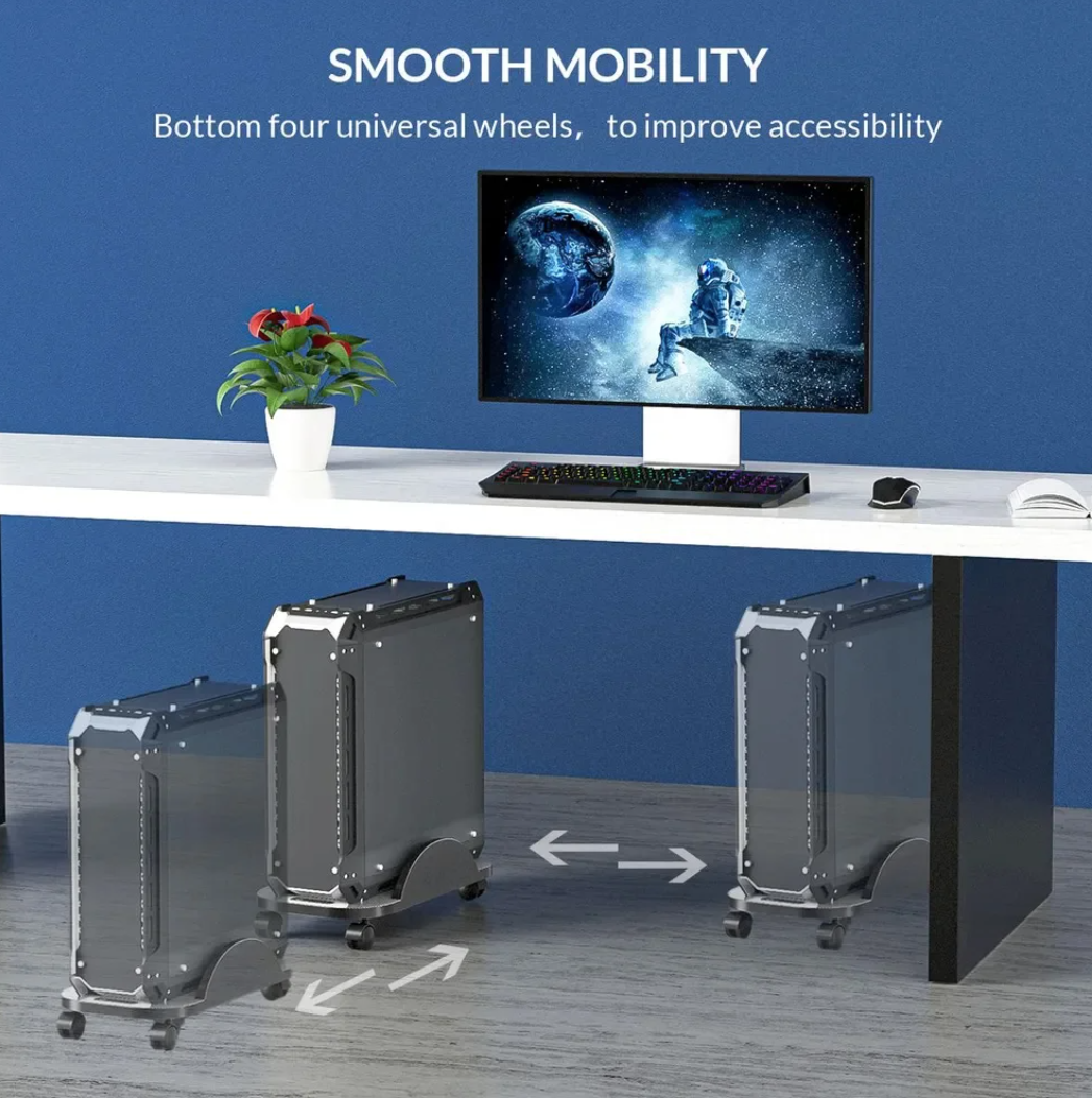 The CPU bracket features smooth-rolling wheels that allow you to move your computer easily when cleaning, upgrading, or reorganizing your workspace. The built-in locking mechanism keeps the stand stable in place, preventing unwanted movement during use.