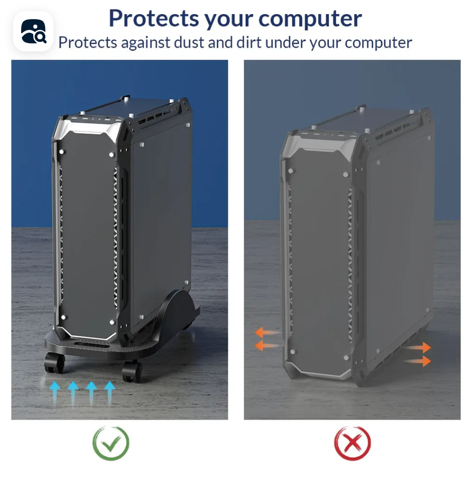 The IAMAKER DND2 CPU Bracket With Wheels is designed to keep your computer tower elevated, organized, and protected. By lifting the CPU from the floor, it helps prevent dust accumulation and improves airflow around your system unit. Ideal for home, office, or gaming setups.