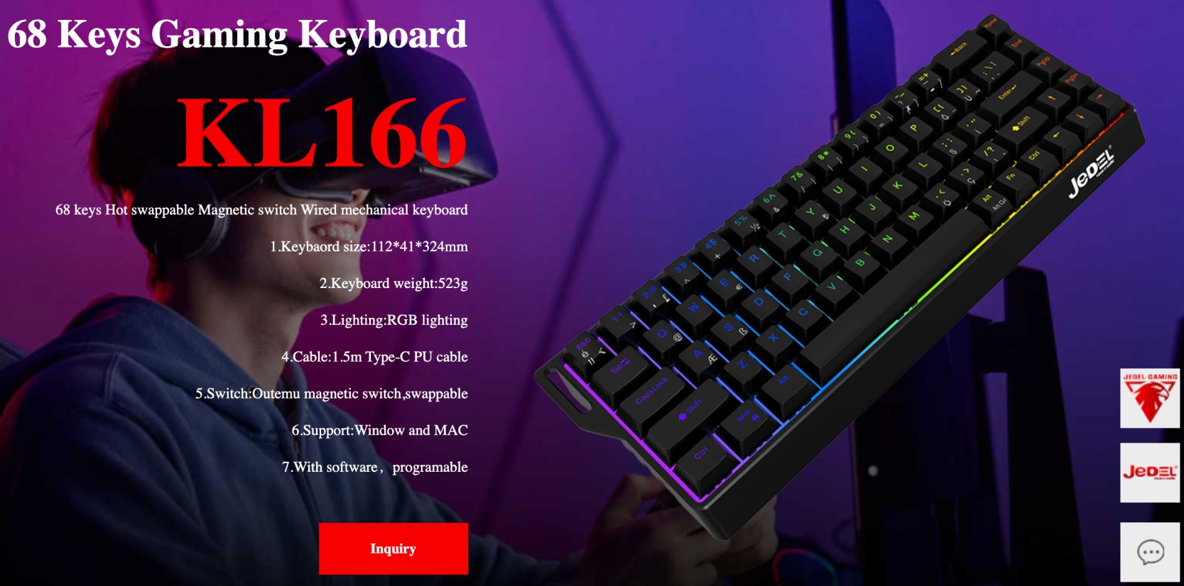 ✅ Fully compatible with Windows and macOS, the keyboard also comes with programmable software, giving users complete control over macros, lighting, key remapping, and performance adjustments. This makes the JEDEL KL166 a highly adaptable choice for gamers, creators, and professionals who need a keyboard that offers customization, flexibility, and reliable performance across multiple platforms.