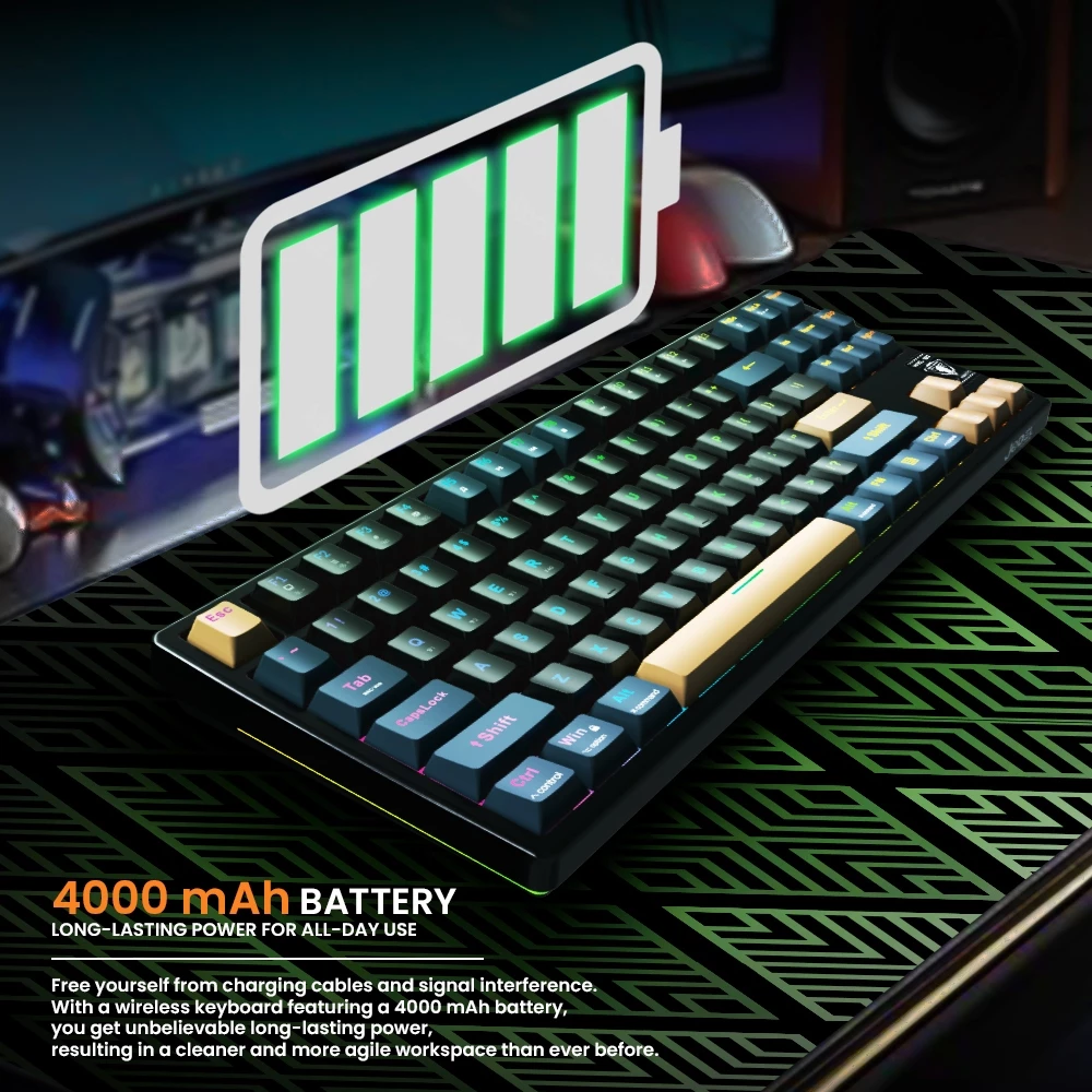 ✅ Powerful and Reliable Battery Life: Equipped with a 4000 mAh rechargeable battery, the WKL-102 delivers long-lasting wireless performance. The USB-C charging port and included 1.5m cable allow for quick and convenient recharging whenever needed.
