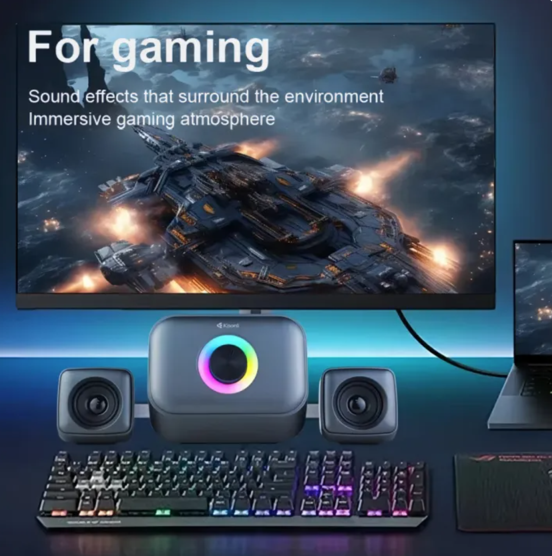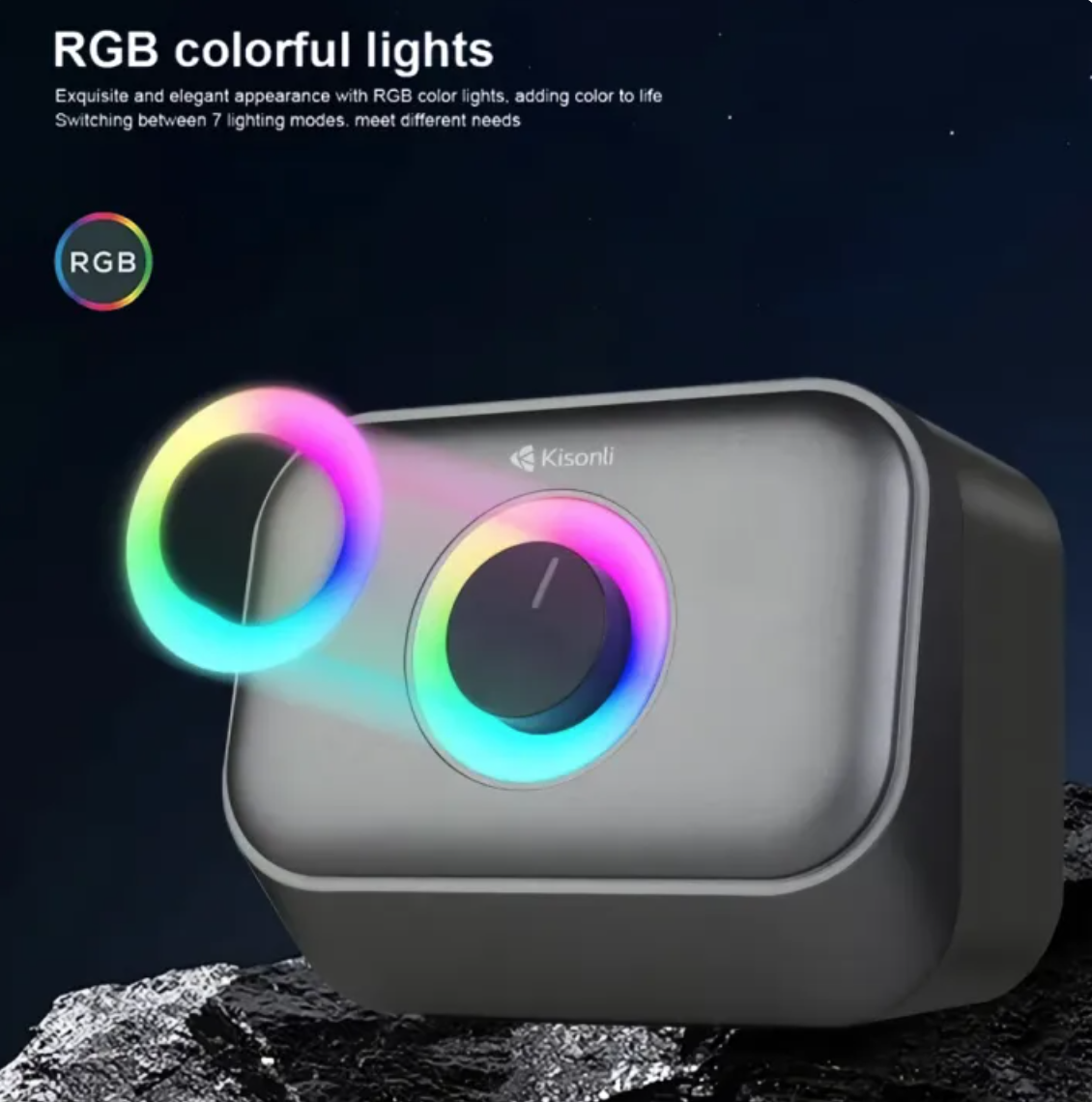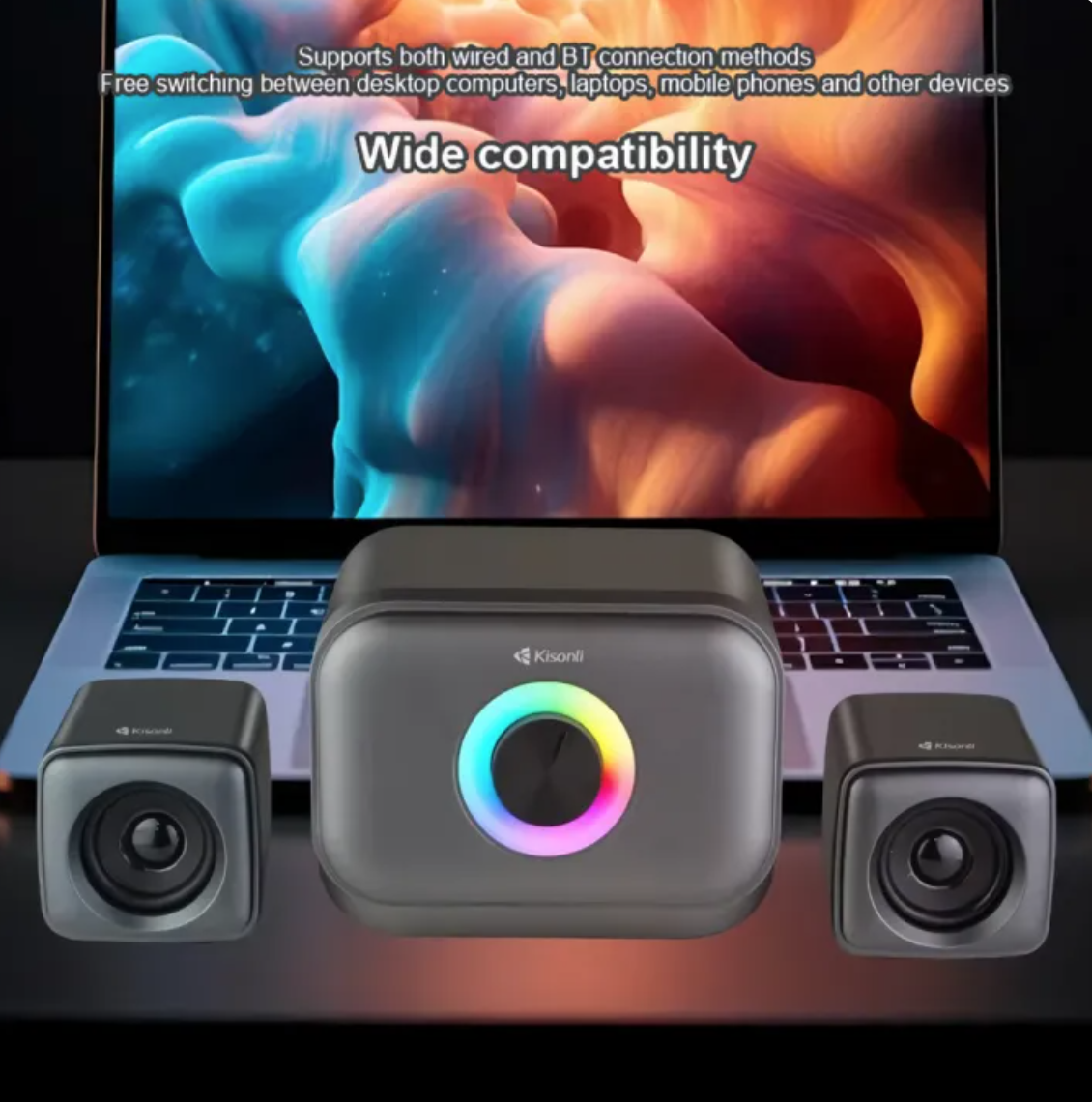 ✅ The Kisonli U-3200BT delivers dynamic audio for gaming, music, and movies, all while enhancing your space with vibrant RGB lighting effects. Its sleek and compact design makes it a stylish addition to any desk or entertainment area.