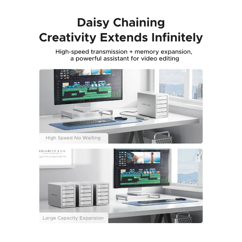 ✅ Vast Storage Capacity: Supports 2.5/3.5-inch SATA hard drives up to 22 TB for a total capacity of up to 88 TB. Compatible with the largest capacity of the current market hard disk, the latest technical support which can easily cope with the high storage requirements of video editors. Our product supports daisy chaining, allowing multiple devices to connect and expand storage capacity, significantly enhancing flexibility and potential for expansion.