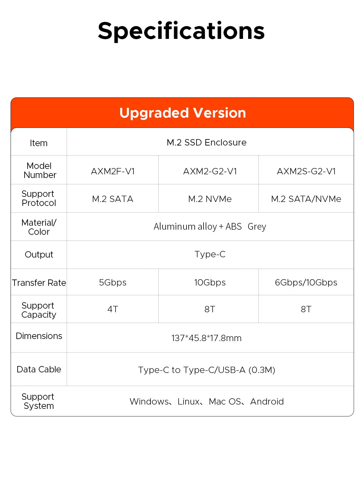 ✅ The ORICO AXM2F-G2 enclosure offers wide compatibility with multiple operating systems including Windows, macOS, Linux, and Android devices. This flexibility allows users to access and transfer data seamlessly across different platforms without compatibility issues. The device includes a convenient 0.3-meter USB-C to USB-C / USB-A cable, ensuring easy connection to both modern and traditional devices. Thanks to its plug-and-play design, users can simply install the SSD, connect the enclosure to their computer, and start transferring files instantly without installing additional drivers or software, making it an ideal solution for professionals, students, and everyday users.