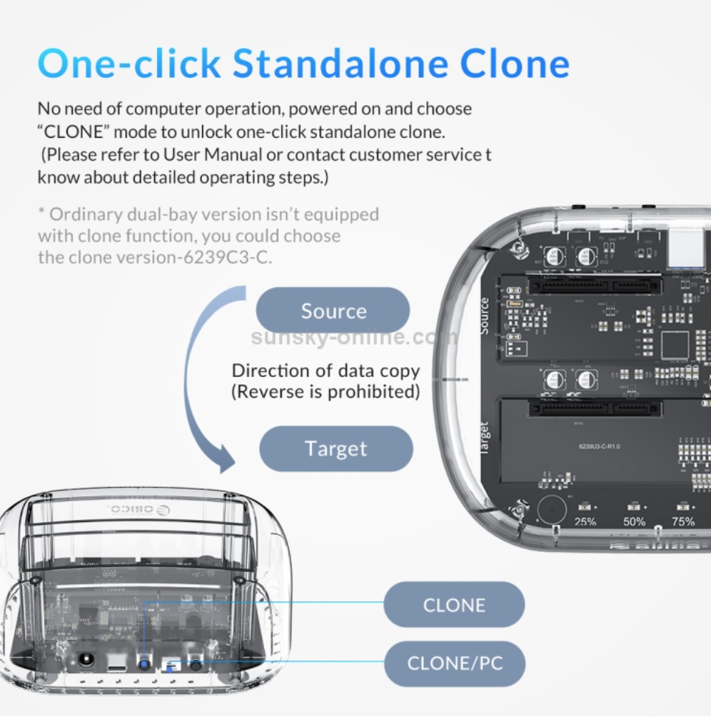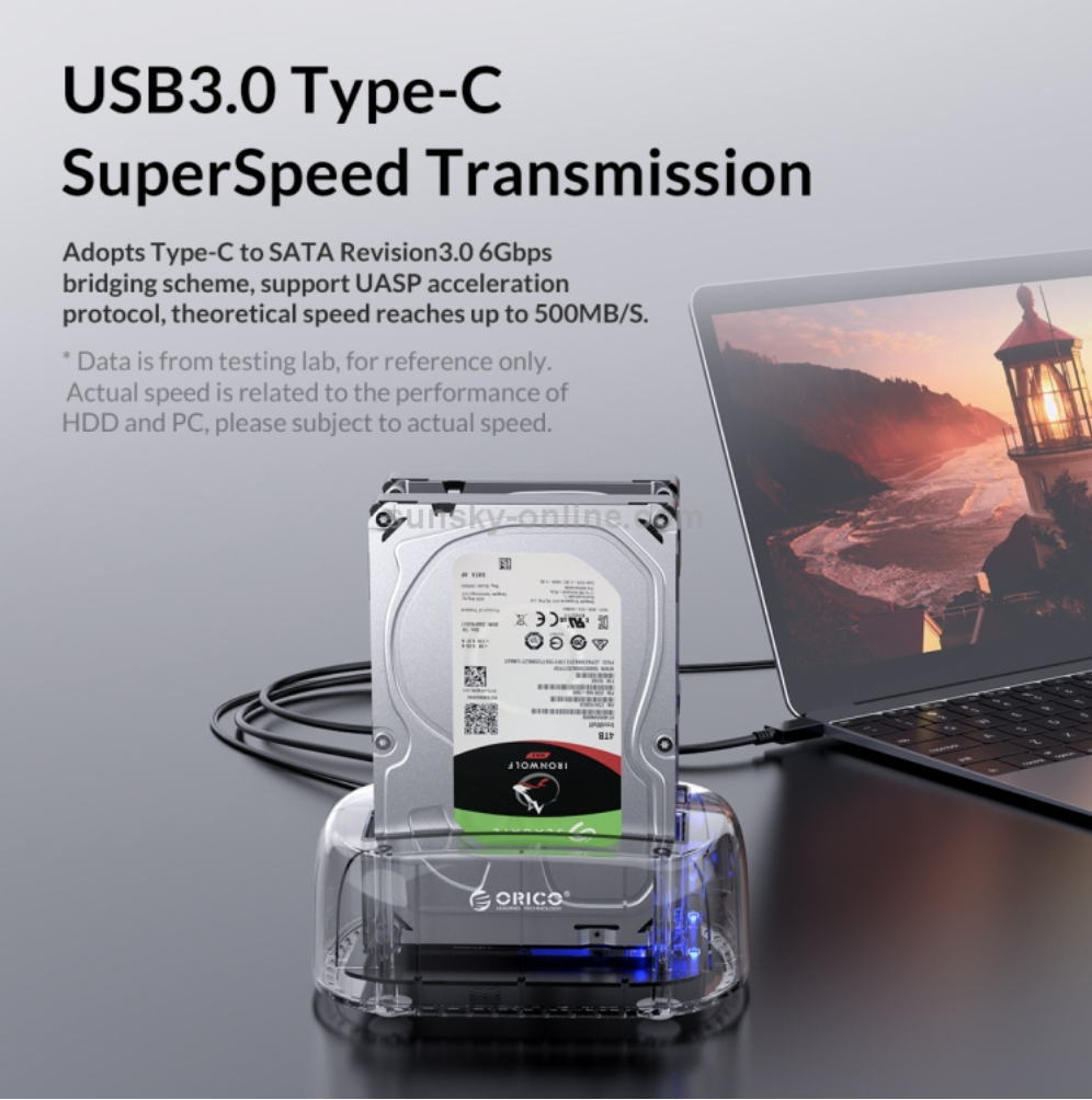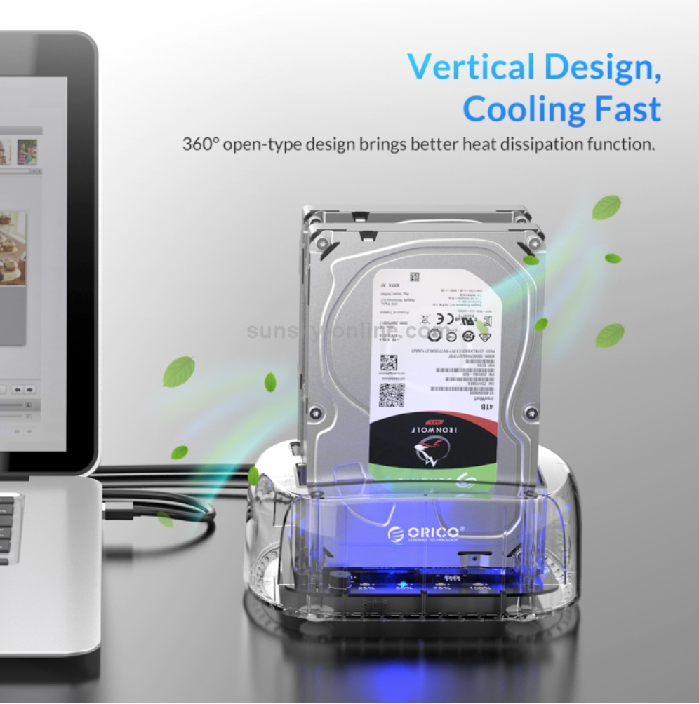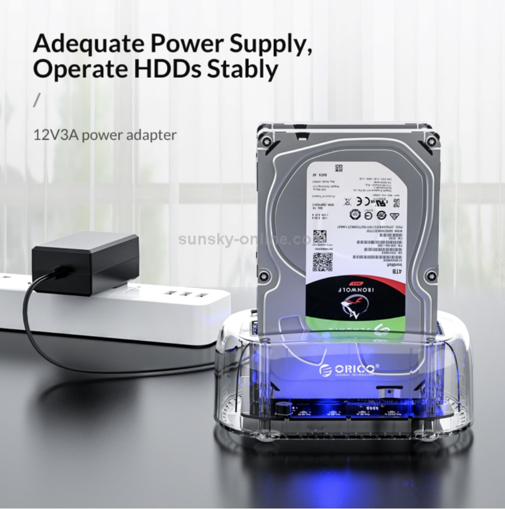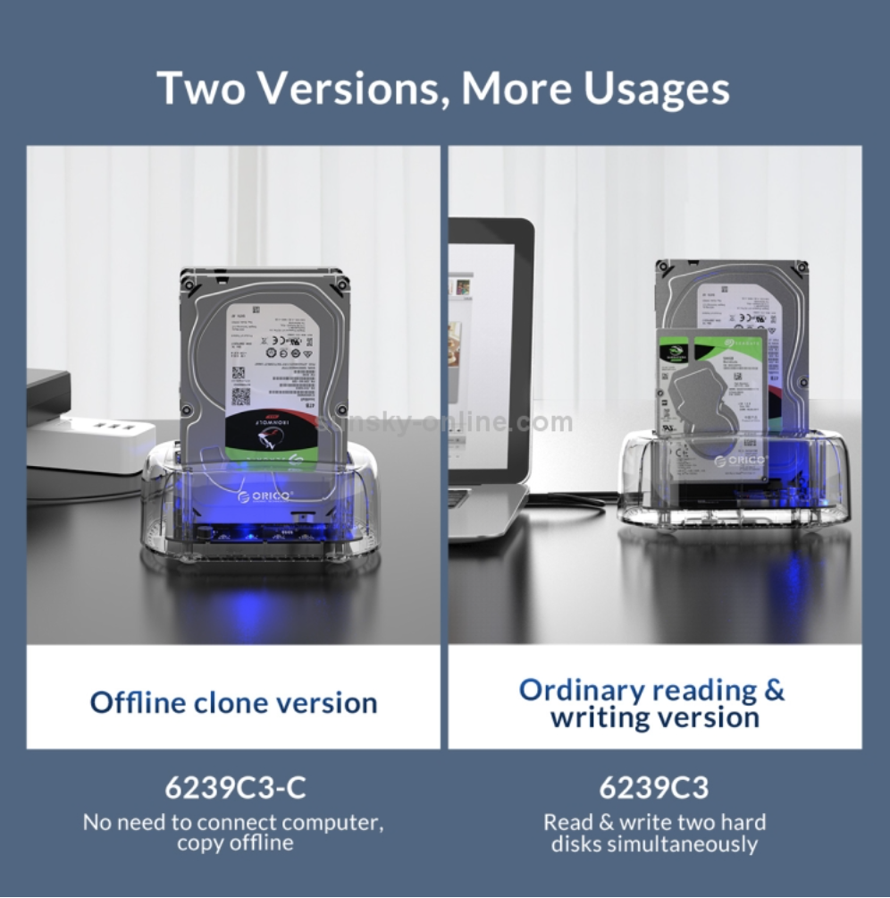 ✅ ORICO 6239C3-CR supports most 2.5 inch / 3.5 inch SATA I/II/III HDD and SSD , up to 8TB (Max) . Super speed USB 3.0 has a maximum data transfer rate of 5Gbps, 20% faster than traditional USB 2.0, with UASP Transfer Protocol. Transparent design help distinguish which hard drive is inside easily, designed to be a beautiful addition to your desk. Full of Smart Features, Super Easy to Use: Tool-free installation; hot-swap plug and play; LED indicator; compatible with Windows, Linux and Mac. This docking station is compatible with both 2.5" or 3.5" HDD or SSD, it holds hard drive firmly and securely. The USB 3.0 interface is compatible with all SATA standards (SATA, SATA II, SATA III), and supports 8TB maximum, implementing expanding capacity of storage.