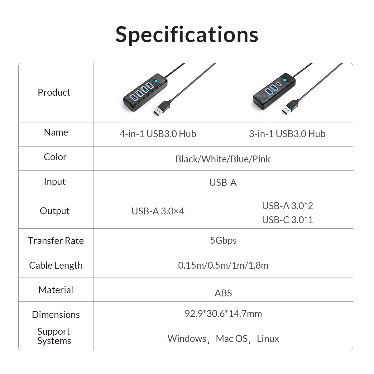 | Product | ORICO PW4U-U3 4 Port USB-A To USB 3.0 HUB | ORICO AHC1-3TF 4-Port USB 3.0 Type-C Hub | FANTECH HA3041 NeraLINK 4 Port USB 3.0 Hub | ORICO W5P-U2 4 Port USB 2.0 Hub |